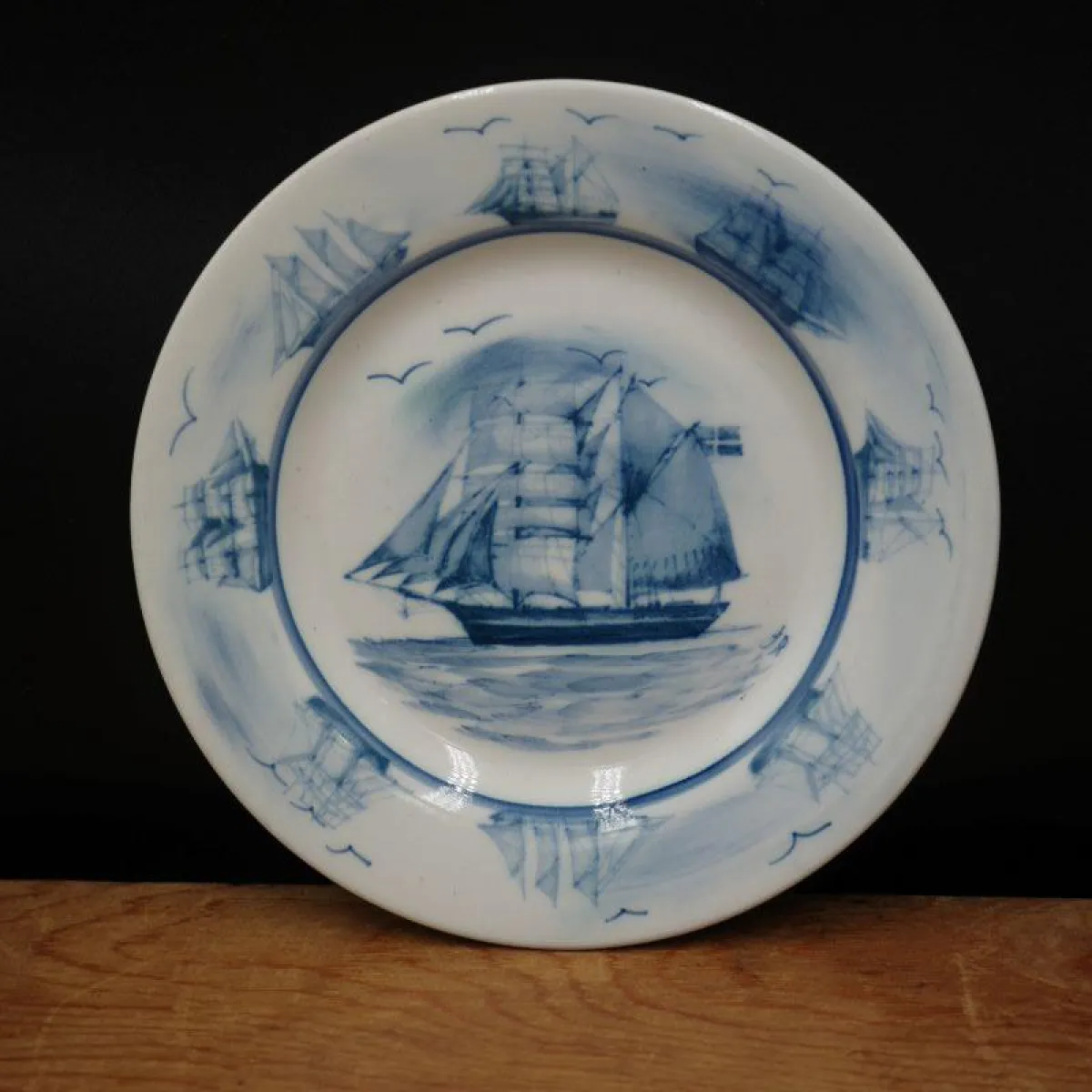 Vintage Oxney Green Nautical Sailing Ships Side Plate Rare
