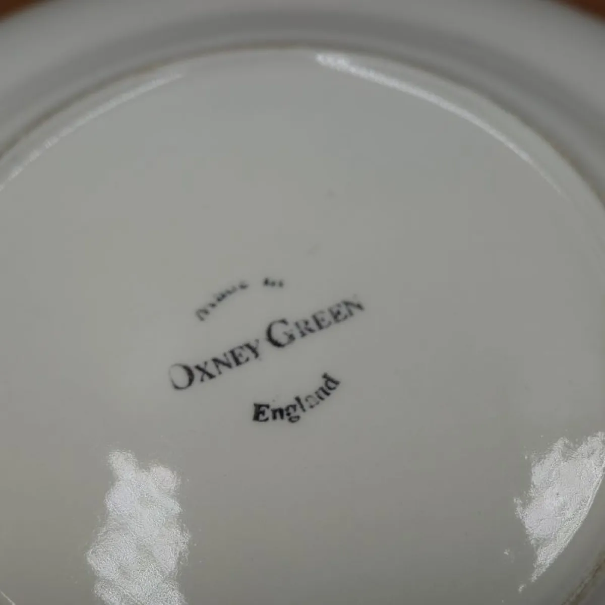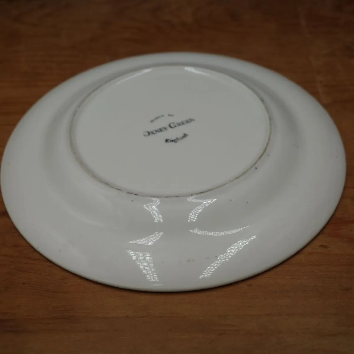 This plate is in great condition with no chips or cracks. It is stamped Oxney Green. It measures 8 1/2 Inches across. Two available.
